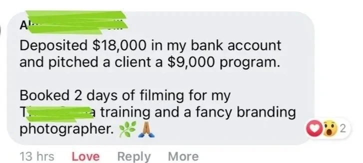 In our work together, she moved out of hourly pricing and into 3, 6 & 9 month containers that feel transformative for both her and her clients.
