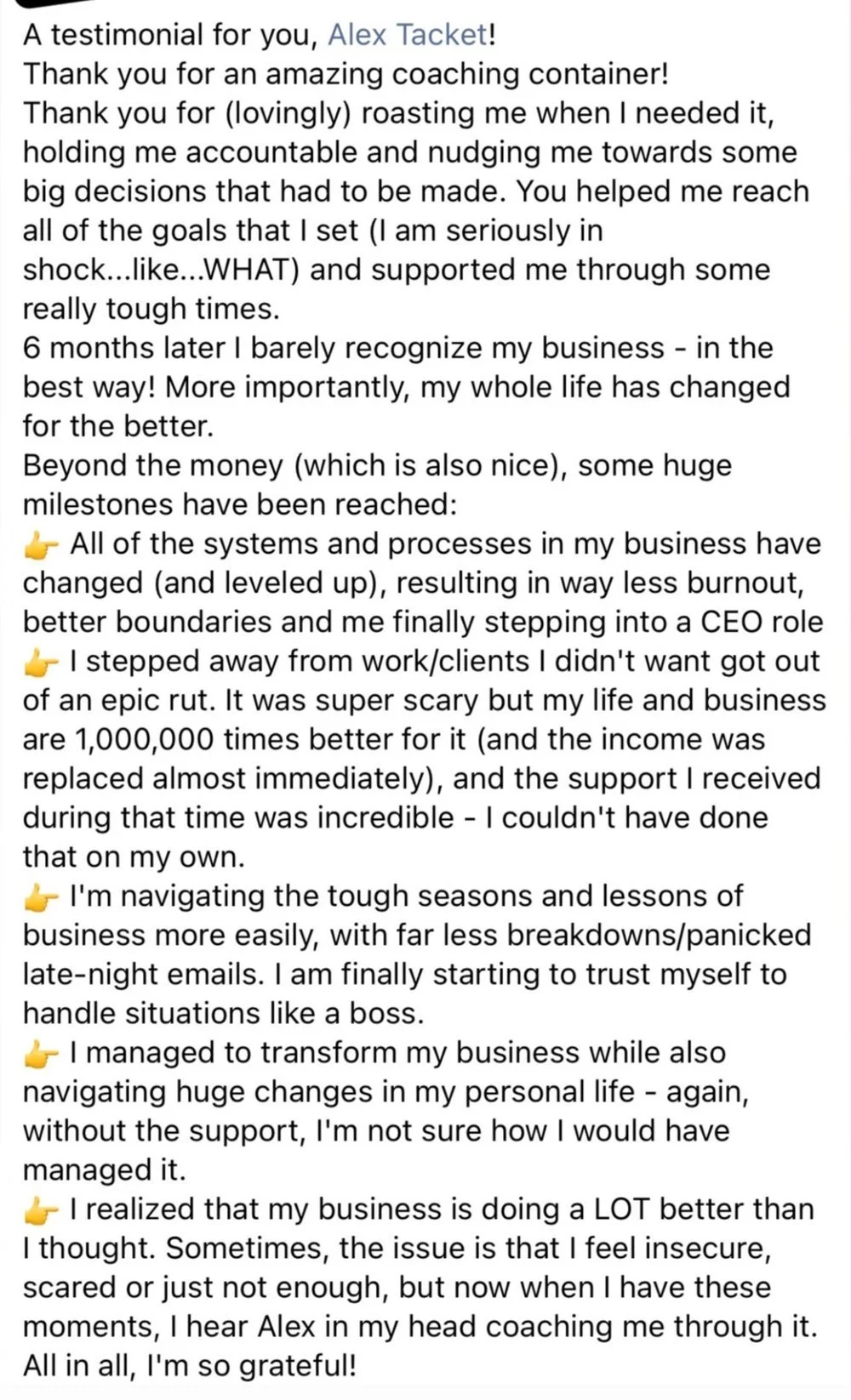During our time together, Anita 10x’d her income, launched wildly creative containers with clients she loves to work with and shifted to working 3 weeks on, 1 week off every month.